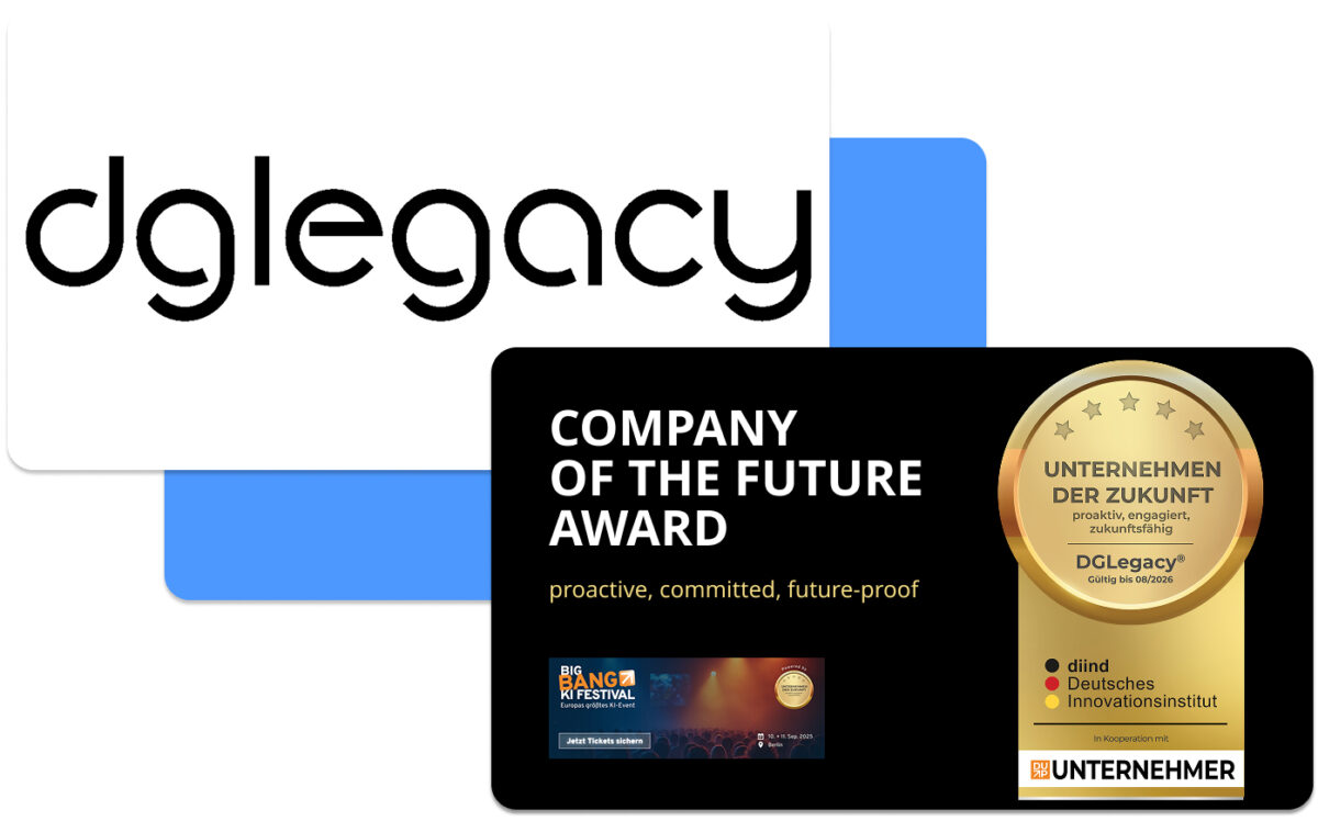 BERLIN, September 9, 2025 – We are proud to announce that DGLegacy® has been awarded the Unternehmen der Zukunft (Company of the Future) seal by the Deutsches Innovationsinstitut für Transformation und Digitalisierung (diind), also known in English as the German Innovation Institute for Transformation and Digitalization.